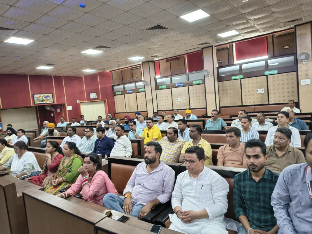 काशीपुर। 17 मई 2025 मेयर दीपक बाली के प्रयासों के चलते आज यहां नगर निगम सभागार में भू व्यवसाइयों और विकास प्राधिकरण के अधिकारियों के बीच एक खुली बैठक हुई जिसमें मंच पर समस्या सुनने वाले अधिकारी थे तो सामने अपनी समस्याओं को रखने वाले व्यवसायी, पार्षद एवं आमजन मौजूद रहे। विकास प्राधिकरण और भू व्यवसायों के बीच समस्या समाधान को लेकर यह बैठक अपने आप में प्रदेश में पहली बैठक रही जिसमें वैध/अवैध कालोनियों, प्लॉटों आदि की समस्याएं रखी गई।