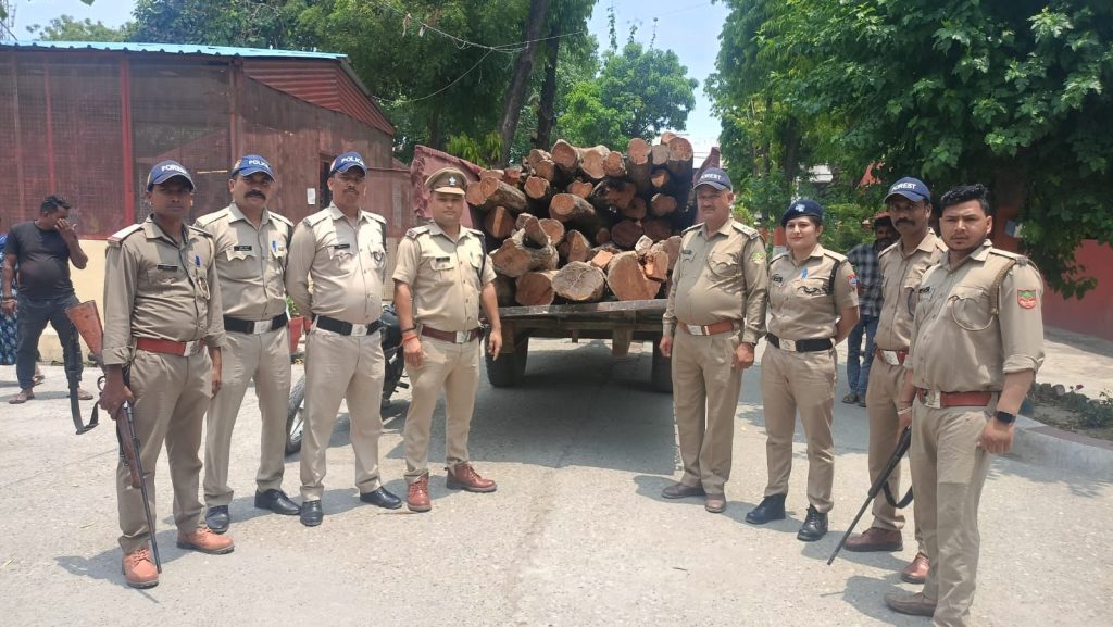 उन्होंने बताया कि पुलिस ने मुखबिर की बात पर विश्वास करते हुए रात्रि दौराने चैकिंग 44 ईमारती प्रतिबंधित लकडी खैर के भिन्न भिन्न लम्बाई व गोलाई के गिल्टे व परिवहन में प्रयुक्त ट्राली मय 01 मो0सा0 हीरो स्पैलन्ड्रर प्लस बंरग काला रजि0 नं0 UP21CY6545 का चैसिस नं0 MBLHAW23XPHCB4546 इंजन नं0 HA11E8PHC95869 को कब्जे पुलिस लिया गया मौके से वाहन चालक फरार हो गया। वस्तु स्थिति से मौके पर ही विभाग वन क्षेत्राधिकारी रुप नारायण गौतम के मो0नं0 9719005973 पर फोन कर सूचित किया गया। उपरोक्त प्रतिबन्धित खैर प्रकाष्ठ व घटना में प्रयुक्त वाहनों को वन विभाग की टीम की सुपुर्दगी में आवश्यक कार्यवाही हेतु सुपुर्द किया गया । गिरफ्तार करने वाली पुलिस टीम में थानाध्यक्ष श्री जसवीर सिंह चौहान थाना गदरपुर 1 उ0नि0 श्री मुकेश मिश्रा थाना गदरपुर 2- कानि0 72 कैलाश राम थाना गदरपुर आदि शामिल रहे।