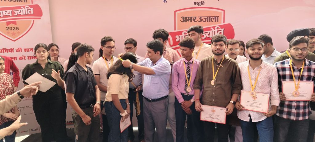 किच्छा, 25 मई, 2025 किच्छा के सूरजमल विश्वविद्यालय प्रांगण में सूरजमल विश्वविद्यालय एवं अमर उजाला के द्वारा मेधावी विद्यार्थियों को सम्मानित करने एवं उनके मनोबल को बढ़ाने के लिए भविष्य ज्योति कार्यक्रम का आयोजन किया गया। कार्यक्रम में जिलाधिकारी नितिन सिंह भदौरिया ने बतौर मुख्य अतिथि के रूप में शिरकत की। कार्यक्रम का शुभारम्भ जिलाधिकारी ने माँ सरस्वती के चित्र पर पुष्प अर्पित कर एवं दीप प्रज्जवलित कर किया। कार्यक्रम में जिलाधिकारी का पुष्पगुच्छ देकर स्वागत किया एवं स्मृति चिन्ह व अंगवस्त्र भेंट कर सम्मानित किया। जिलाधिकारी ने कार्यक्रम में आये सभी मेधावियों को प्रशस्ति पत्र देकर एवं मेडल पहना कर सम्मानित किया। उन्होंने मेधावी विद्यार्थियों के शिक्षकों को भी स्मृति चिन्ह देकर सम्मानित किया।