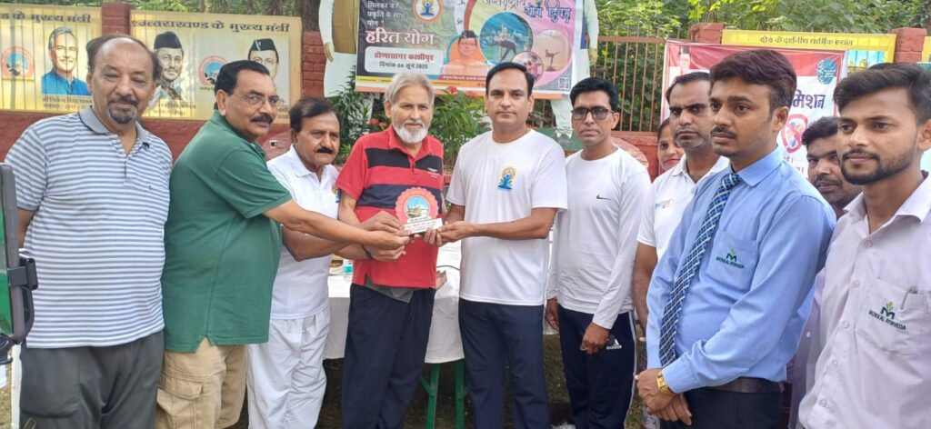 काशीपुर। 04 जून, 2025 द्रोणासागर के मैदान में जिला आयुर्वेद एवं यूनानी अधिकारी डॉ. आलोक कुमार शुक्ला के मार्गदर्शन एवं आयुष एवं आयुष शिक्षा विभाग उत्तराखंड के निर्देशों के क्रम में सुबह 7 से 8 बजे तक हरित योग कार्यक्रम का आयोजन किया गया।