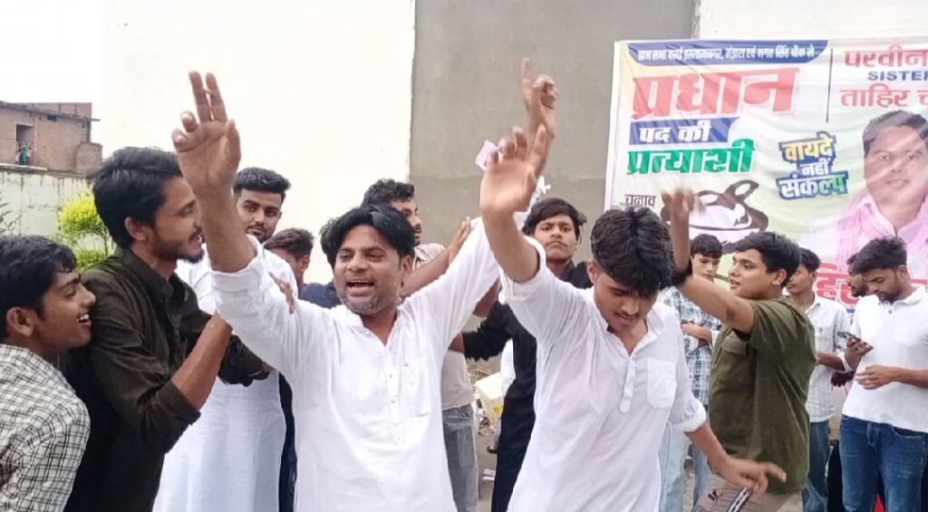 जिस पर ग्राम प्रधान ताहिर चौधरी ने भी अपने समर्थकों के साथ डांस किया साथ ही उन्होंने ग्राम वासियों का आभार व्यक्त करते हुए कहा कि उन्हें जिस तरह से ग्रामीणों ने अपना प्यार और स्नेह दिया है उसके लिए वह ग्राम वासियों के सदैव आभारी रहेंगे। आगे उन्होंने कहा कि उनके द्वारा ग्राम पंचायत के विकास के लिए एक प्रधान कार्यालय की घोषणा की गई थी। तथा गांव की मुख्य सड़क को बनवाने का वादा किया था उसके साथ ही दो बड़े नाले नदी में डलवाने की बात की गई थी उन्होंने कहा कि शपथ ग्रहण समारोह के बाद वह जनता से किए गए वादों पर बिंदुवार कार्य करेंगे।