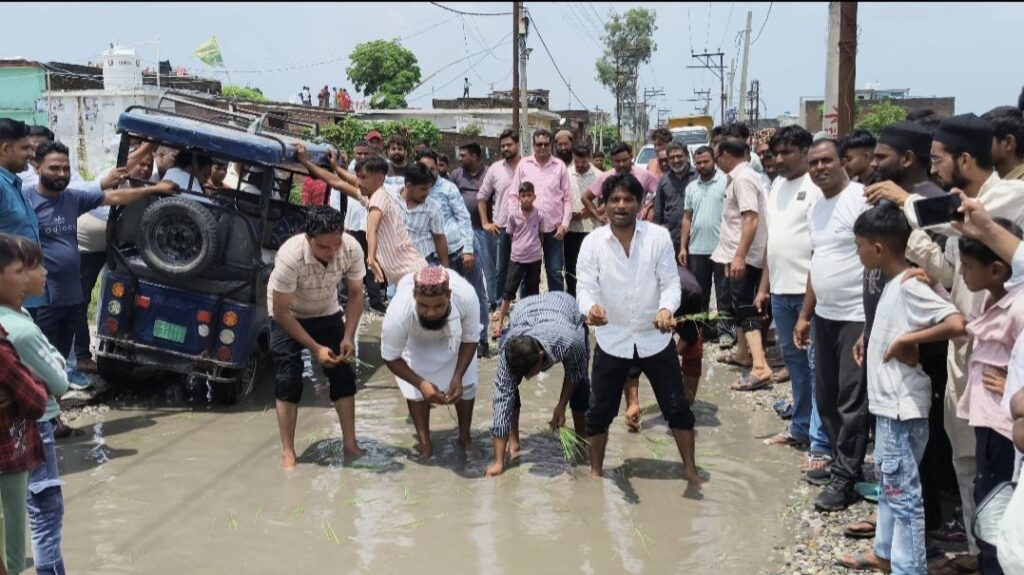इस दौरान बड़ी संख्या में ग्रामीण एकांतरित हुए पर श्री विधायक आदेश सिंह चौहान ने भी सड़क में पड़े गढ़ों में ग्रामीणों के साथ धान की पौध लगाई। इस मौके पर विधायक आदेश सिंह चौहान ने कहा कि 3 वर्ष पूर्व यह सड़क प्रधानमंत्री सड़क योजना के अंतर्गत बनाई गई जब यह बनाई गई उसे समय सड़क में घटिया सामग्री लगाई गई जिसकी शिकायत ग्रामीणों के द्वारा प्रशासन से की गई परंतु कोई संज्ञान नहीं लिया गया उन्होंने कहा कि उनकी वार्तालाप फोन पर जिला अधिकारी नितिन भदोरिया से हुई जिसमें उन्होंने बनी हुई सड़क की जांच करते हुए कार्यवाही किए जाने की बात कही है। उन्होंने कहा कि यदि प्रशासन के द्वारा इस मुख्य सड़क का निर्माण कार्य नहीं कराया गया तो वह यह बात विधानसभा सत्र के दौरान रखेंगे जिससे कि ग्रामीणों की मुख्य मार्ग बन सके। विरोध प्रदर्शन करने वालों में ग्राम प्रधान फिर्दोश जहां, ग्राम प्रधान निवेदक नबी हसन, इसरार हुसैन, मोहम्मद जुबेर,पूर्व ग्राम प्रधान इरशाद अली, सलीम अहमद, मेहरबान शाह, कमल सिंह, निरंजन सिंह ,चरणजीत सिंह, चंद्रपाल सिंह, जाकिर हुसैन, साकिर हुसैन ,नवाब अली, जावेद अली, रणजीत सिंह, भजन सिंह, फैजुल हसन, केसर आमिर, गुलाम नबी उर्फ मोहम्मद नबी, नाजिम अली ,नूर हसन, मोहम्मद अली, अहमद अली, आजम अली सैफी, मोहम्मद अली, वसीम अहमद ,मुकर्रम अली के अलावा सैकड़ो ग्रामीण मौजूद रहे।