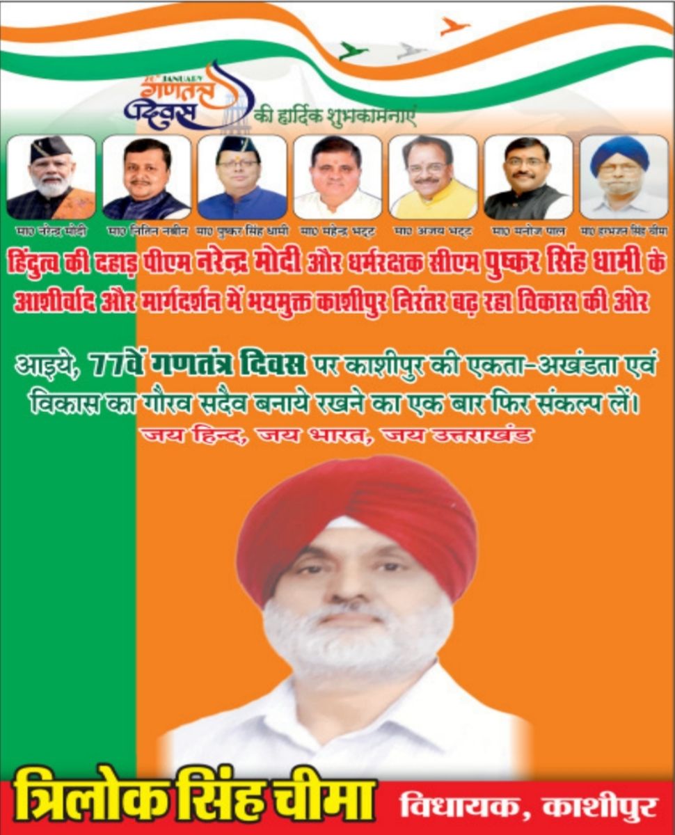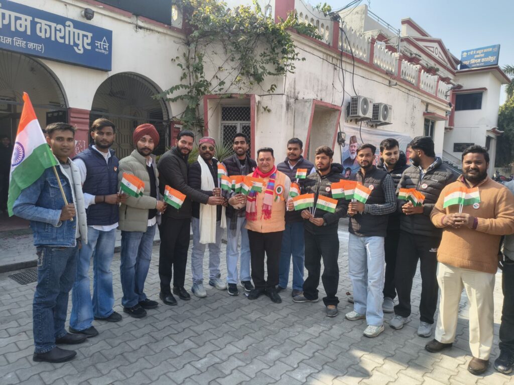 काशीपुर। 26 जनवरी 2026 नगर निगम प्रांगण में गणतंत्र दिवस पूरे उत्साह, गरिमा और देशभक्ति के माहौल के साथ मनाया गया। समारोह के दौरान महापौर दीपक बाली, विधायक त्रिलोक सिंह चीमा तथा मुख्य नगर आयुक्त रविंद्र सिंह बिष्ट ने संयुक्त रूप से ध्वजारोहण कर राष्ट्रीय ध्वज को सलामी दी।