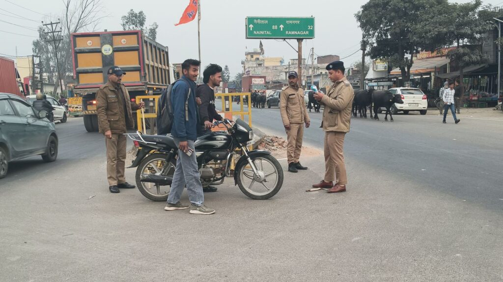 में पुलिस ने यातायात नियमों के पालन और अपराध नियंत्रण को लेकर सघन वाहन चेकिंग अभियान चलाया। अभियान के दौरान तीन सवारी, बिना हेलमेट, बिना ड्राइविंग लाइसेंस तथा बिना आवश्यक कागजातों के दोपहिया वाहन चलाने वाले दर्जनों चालकों के ऑनलाइन चालान किए गए।